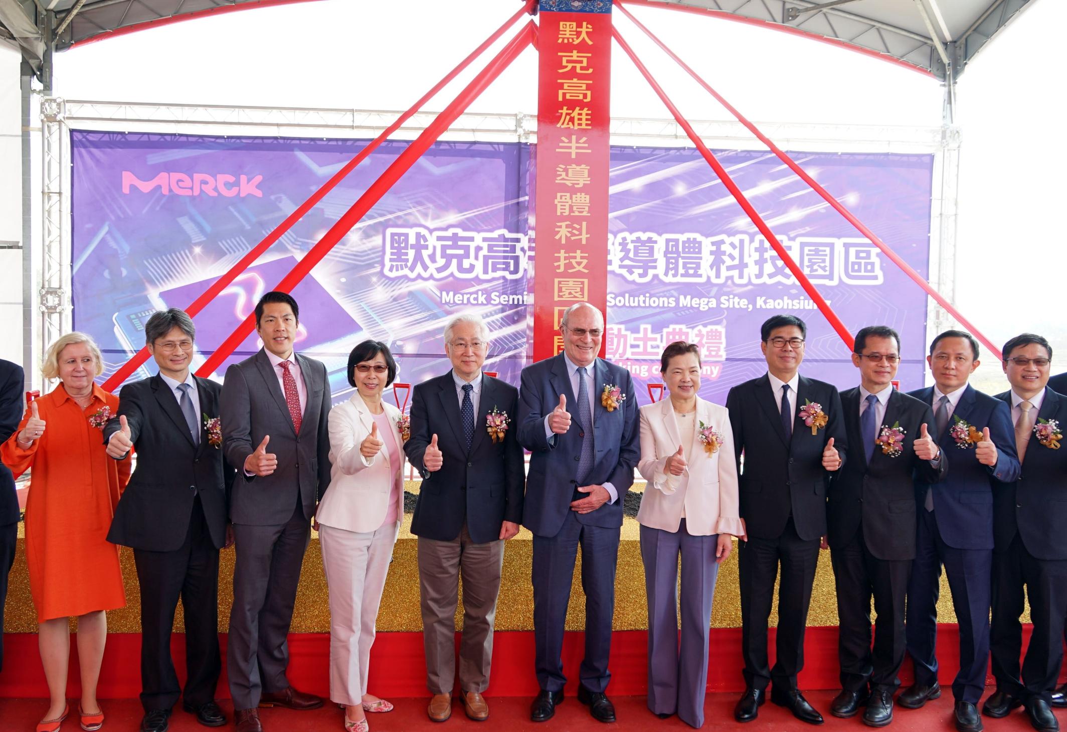 德商默克公司(Merck)全球首座大型半導體材料科技園區,8日在南部科學園區高雄園區盛大動土,佔地15公頃的園區是默克公司在台灣最大的投資案,也是佈局全球半導體生產供應鏈據點中最大單一投資項目。