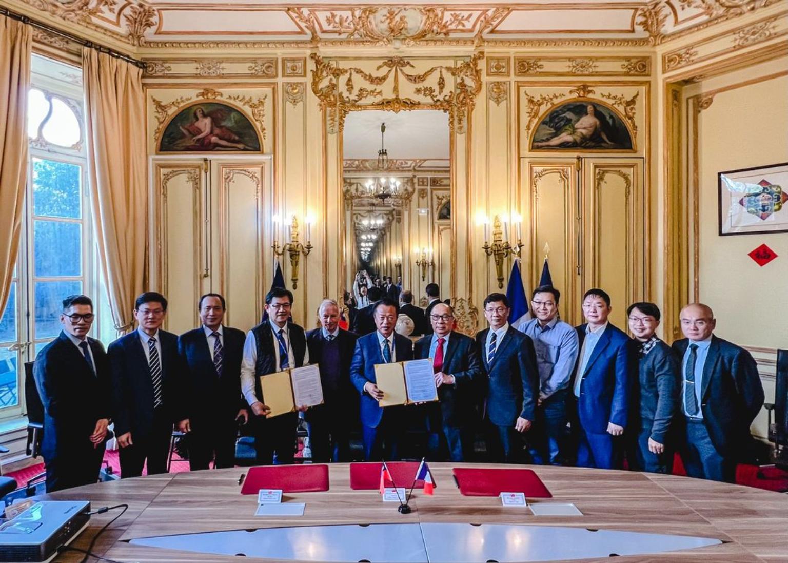 翁章梁此行先前往駐法代表處,與MoovinV的執行長Alain Dubois座談,雙方並簽訂合作意向書。