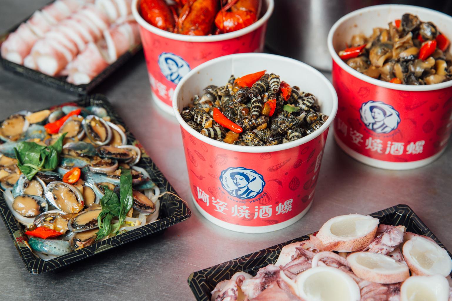 自台中港車站轉乘公車便可抵達梧棲觀光漁港,這裡能採買現撈生猛海鮮,還有許多美食攤位,「阿姿燒酒螺」是漁市場內最老牌燒酒螺店,至今已有33年歷史。鎮店之寶燒酒螺,經過2次低溫、3次高溫殺菌,一吸噴出滿滿醬汁,螺肉咻地飛出來,老闆娘阿姿稱這種食趣叫「吸吸樂」。