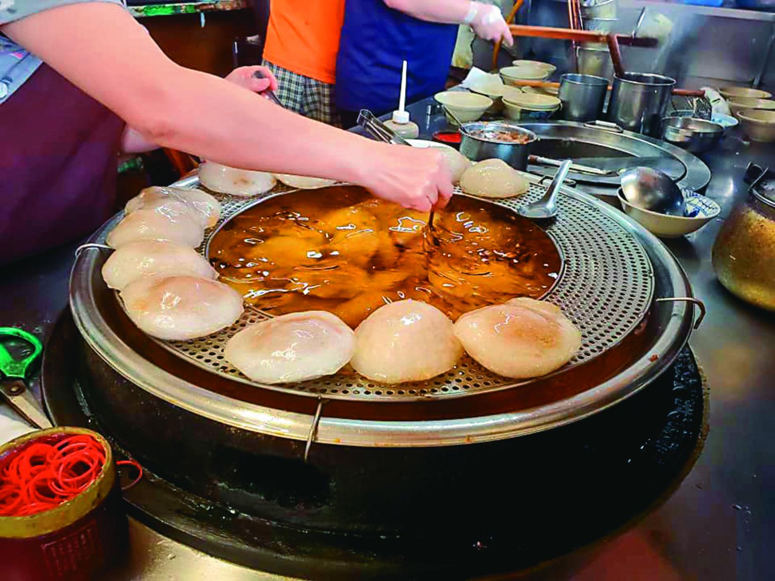 與「那個麵線」位在同條路的「肉圓清」,是沙鹿區30多年老店,距沙鹿車站約1.5公里。肉圓先蒸過再放入油鍋中燜,燜到油溫不會燙舌、內餡卻夠「熱」的程度才起鍋。皮吃起來不是傳統酥脆的口感,而是像粿一樣咕溜軟嫩。老闆白彥彬說:「肉圓餡夏天採用筍丁,冬天改用大頭菜,就是不用加工料。」內餡彈牙的口感與外皮形成強烈對比,愈嚼愈香甜,相當特別。