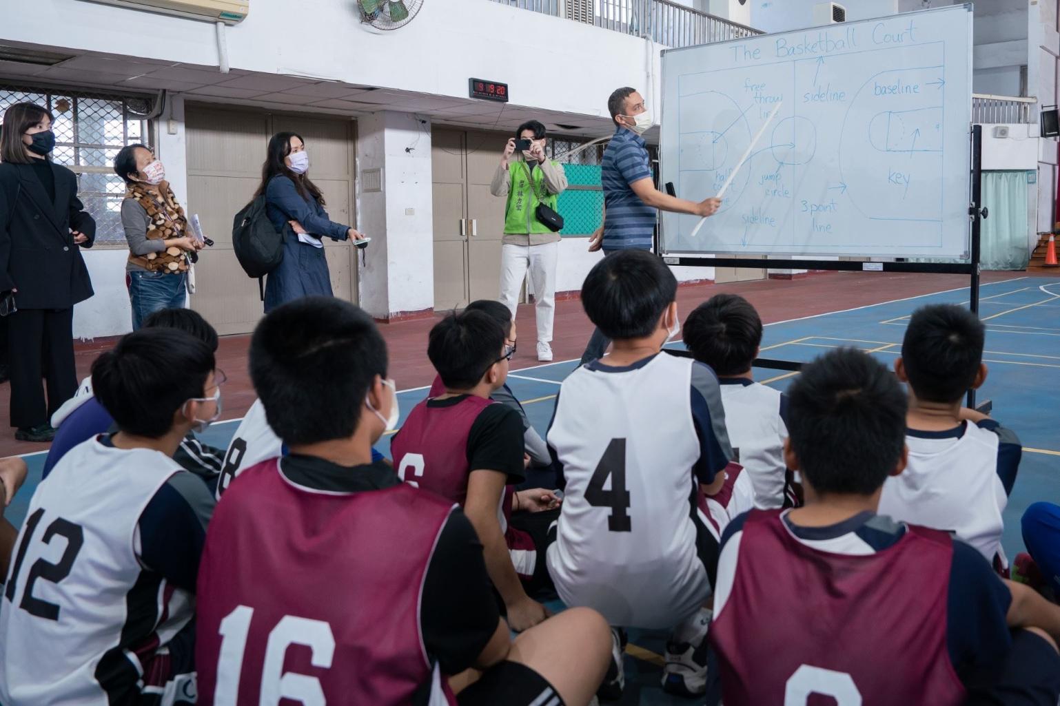 隨著寒假結束,邁入開學第一週,高雄市長陳其邁關心校園雙語教育推動情形,17日上午至旗津國中訪視「校校有雙語」教學成果,並與校園師生以英語互動,其中更透過雙語籃球社團課程,運動結合英文以及時下流行動漫,更添生活情境,陳其邁也展現球技切磋參與,樂趣十足。