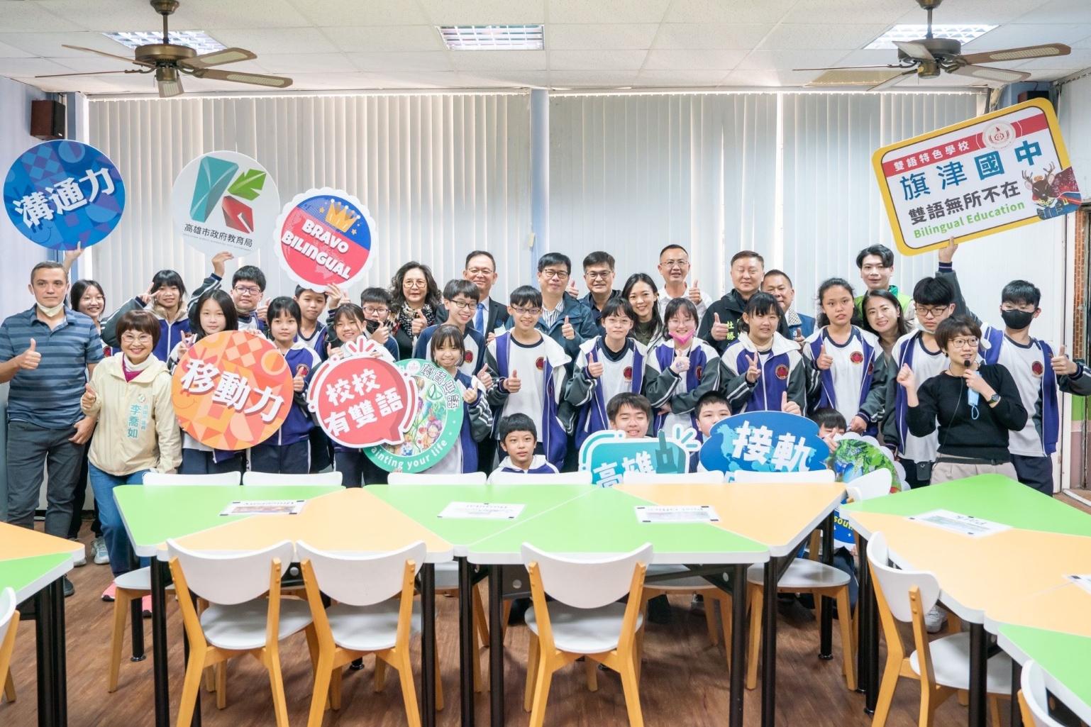 旗津國中自110學年度申辦雙語特色學校計畫,由中外師協同教學,成效卓著,111學年度申辦雙語籃球社團,目前預計申請112學年度教育部國民及學前教育署補助辦理之「部分領域雙語課程教學計畫」,將有4個學習領域申請雙語教學課程,營造校園多元雙語學習環境。