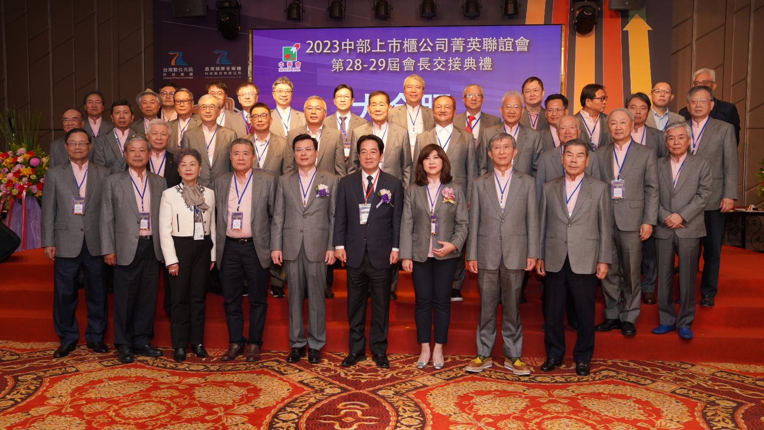 中部上市櫃公司菁英聯誼會(簡稱中菁會)19日舉行第28、29屆會長交接典禮,新任會長由台數科董事長廖紫岑接棒。交接典禮現場上,包含副總統賴清德、台中市長盧秀燕、彰化縣長王惠美、南投縣長許淑華、雲林縣長張麗善等貴賓皆出席盛會。