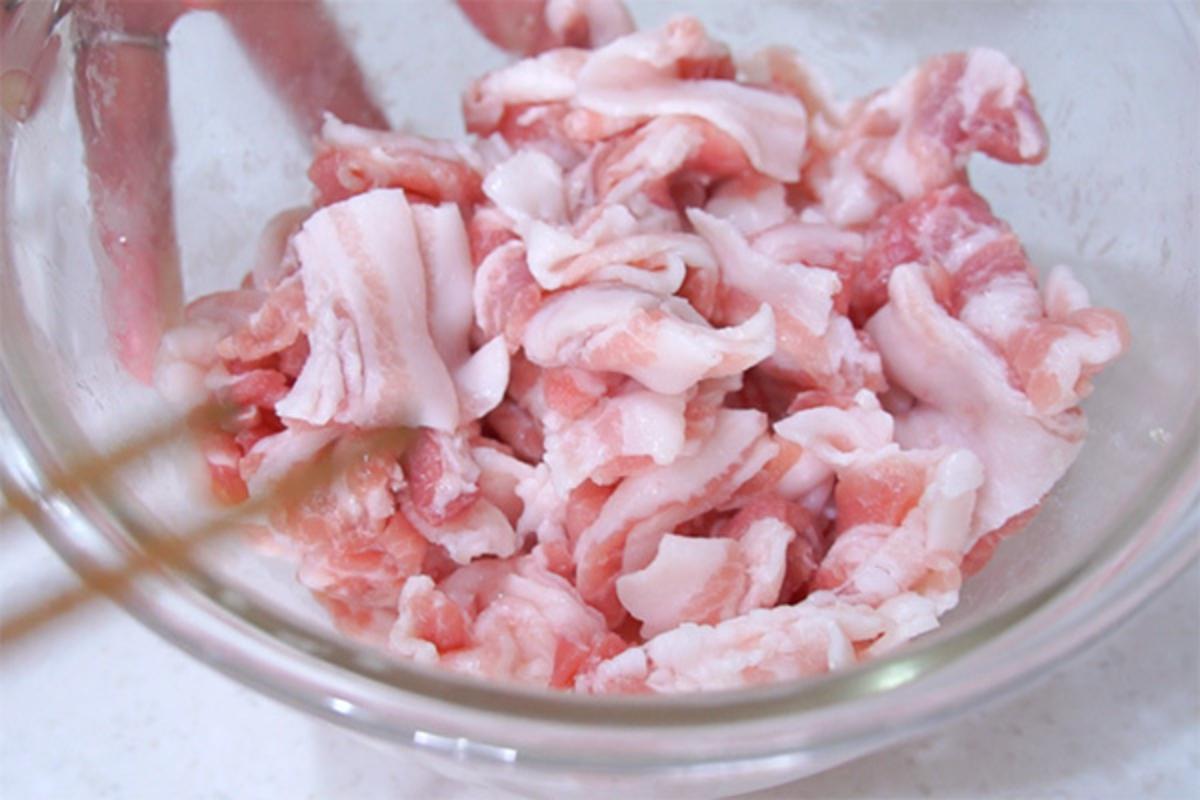 豬五花肉片切適口大小,加入鹽巴、糖、米酒稍加醃漬。