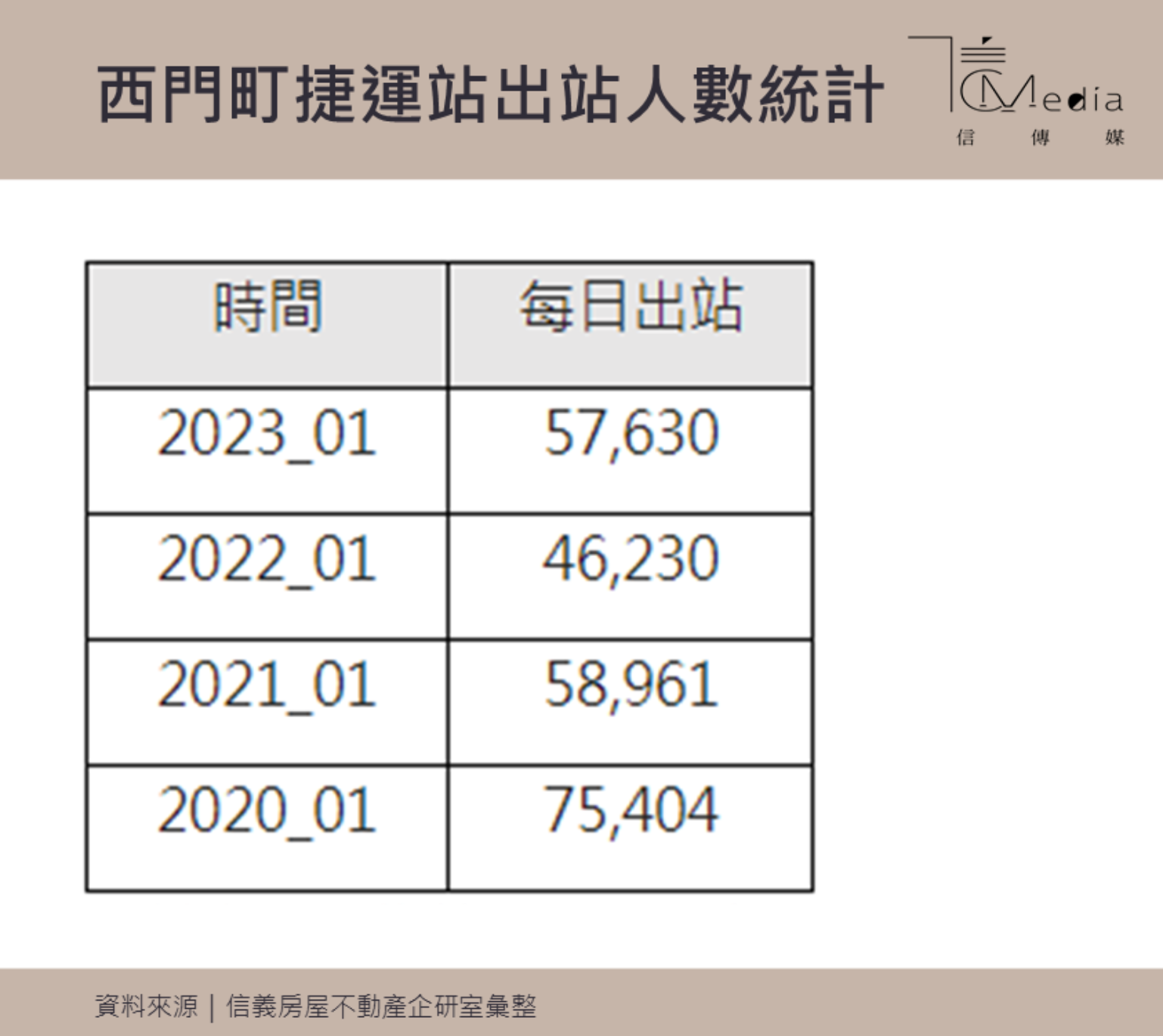 根據捷運站每日進出人次統計,西門町今年1月平均每日出站人數為5.76萬元,已經較去年同期的每日4.6萬人明顯復甦,漸接近2021年1月的平均每日5.9萬人的水準,但距離2020年1月每日平均7.5萬人仍有段差距。