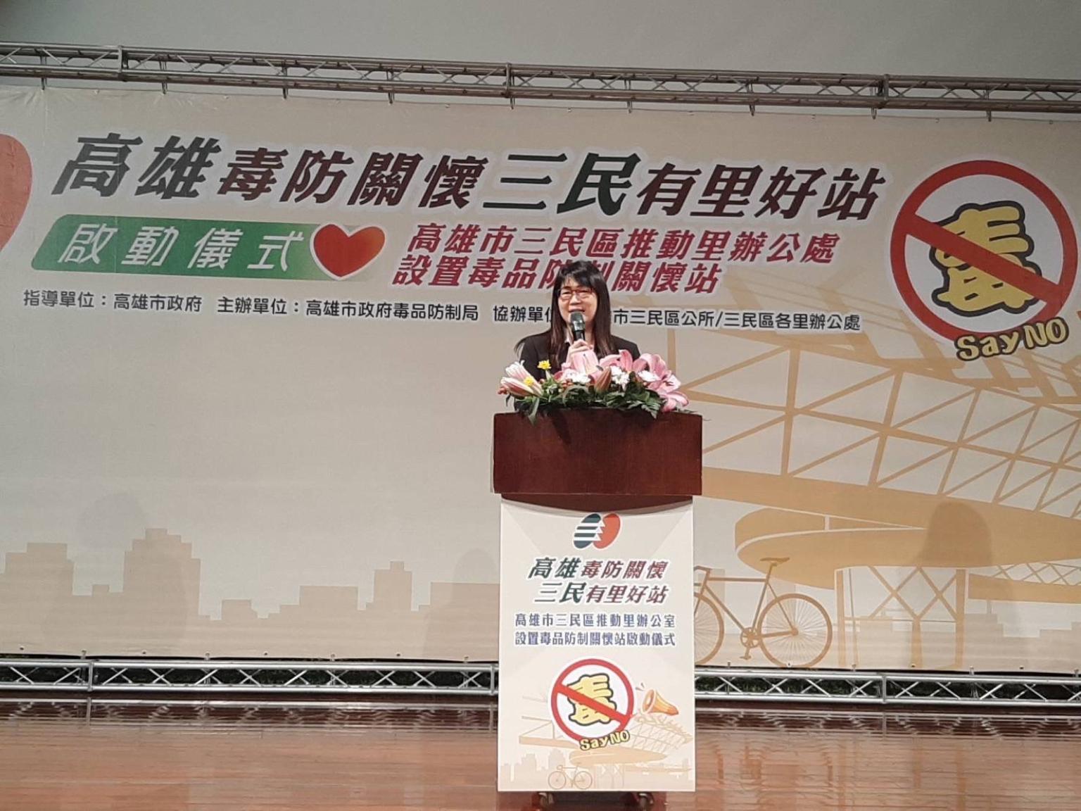 毒防局局長林瑩蓉出席三民區86里的里辦毒防關懷站成立啟動儀式。