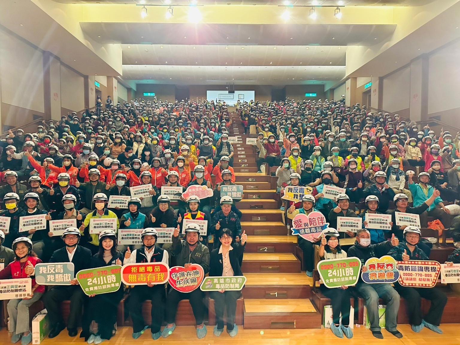 三民區公所及里長主席黃文良率領的86位里長、鄰長、巡守隊、志工隊等逾500位里民熱情出席,於慈濟靜思堂國際會議廳舉辦三民區86里的里辦毒防關懷站成立啟動儀式。