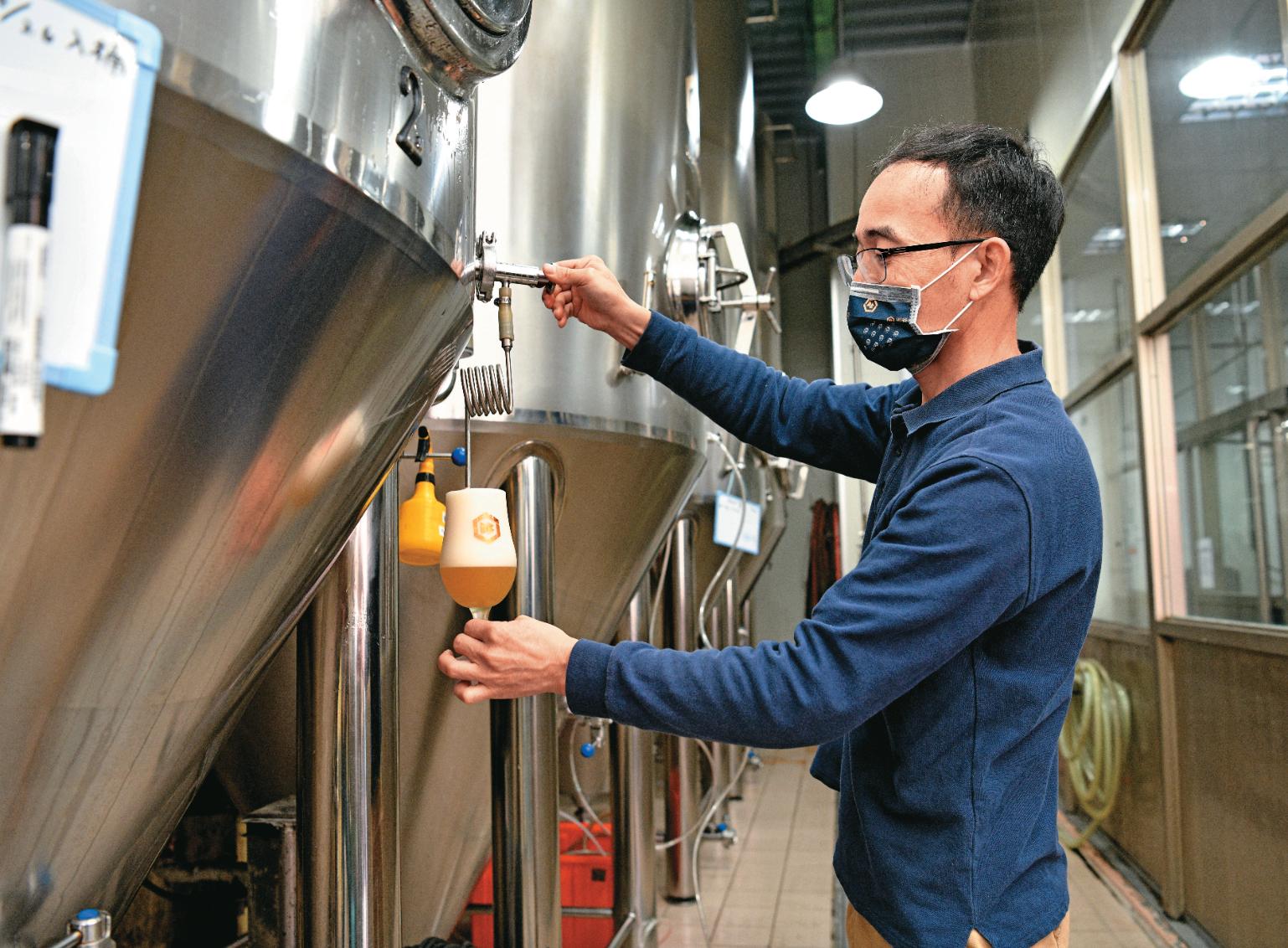 走入發酵間,鄧心承熟練地拉開酒閥,用冰鎮玻璃杯盛裝透亮酒液,讓雪白酒帽覆蓋其上,輕酌一口後綻露的笑容,如同盈滿室內的麥芽香,溫和又醇厚。累積多次獲獎經驗後,他發現加入台灣水果風味的酒款,在國際上足具競爭力,也催生了自家品牌鄧爸麥酒,應用扎實的釀造理論,確實掌握水果的特性與不同酵母的特色,疊加出層層風味,「例如草莓與鳳梨,就很適合跟風味華麗的艾爾酵母一起發酵。但就算如此,不同水果加入酵母的時間點與溫度也不盡相同。」