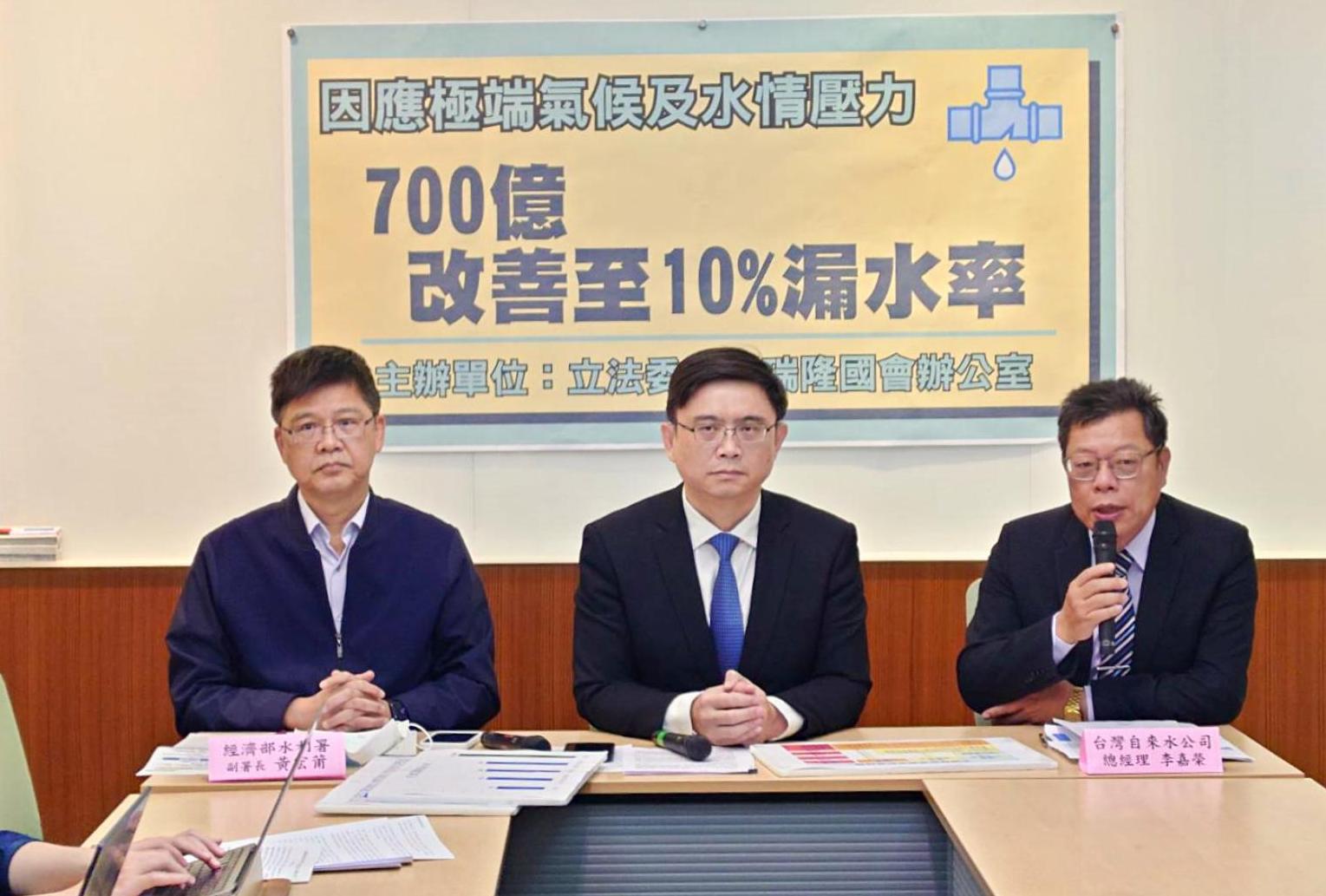 立委賴瑞隆10日在立法院召開記者會,呼籲政府應編列700億元特別預算,將全台漏水率由現在的13.1%降至10%,並在2029年完成目標,記者會上,台灣自來水公司也透露全國漏水率最高的是基隆市、最低的是台南市。