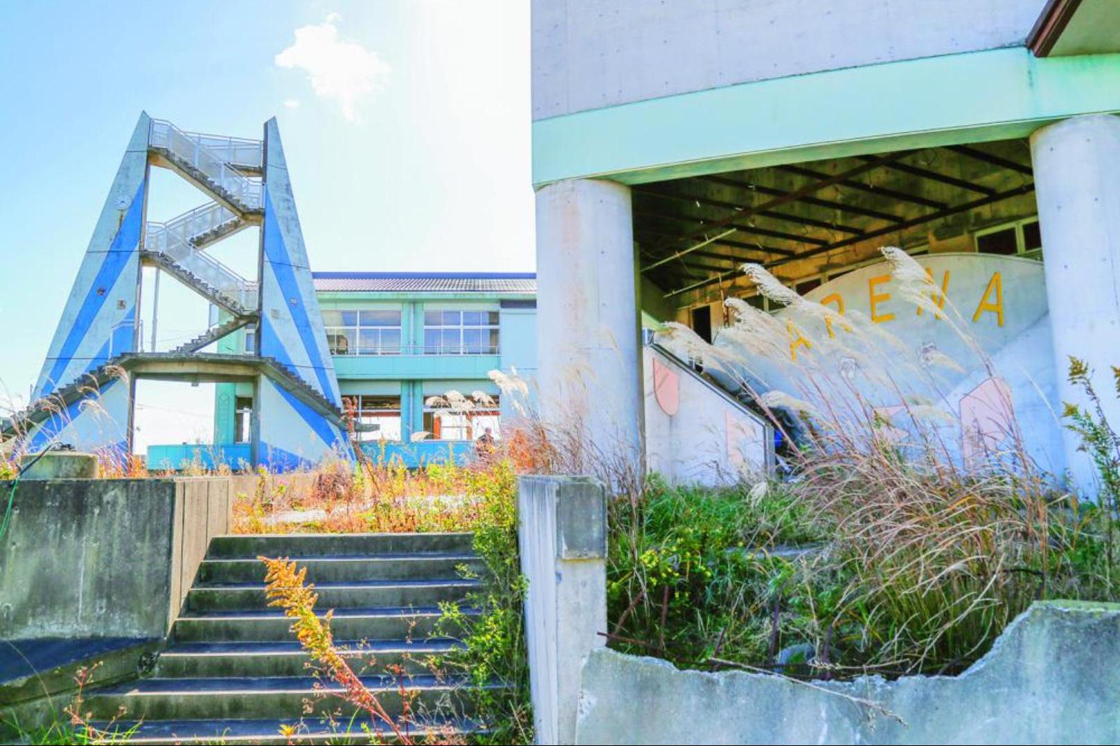 旅客也能參觀受創甚深的富岡町部分開放街道,處於廢校狀態中學仍保留著準備舉行畢業典禮的裝飾。富岡町是位於東電第一和第二核電廠之間的濱海小鎮,災前居民有1.6萬人,災後銳減為1千人。