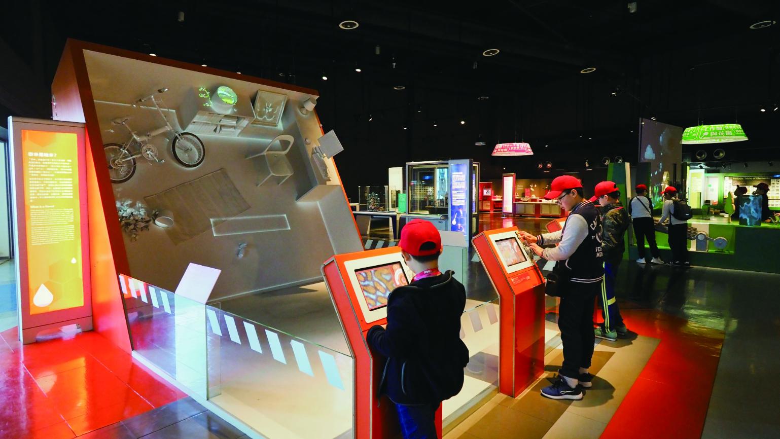 台灣科學教育館的常設展皆設有多樣化的互動裝置,將生硬的科學知識化作遊戲,讓孩子愉快學習。例如5樓的物理科學展示區,孩子可以體驗全身被大泡泡包裹的感覺,藉此學習什麼是表面張力;還可踩一踩方輪的腳踏車,感受不同形狀輪胎的摩擦阻力,了解為何輪胎都是圓形。