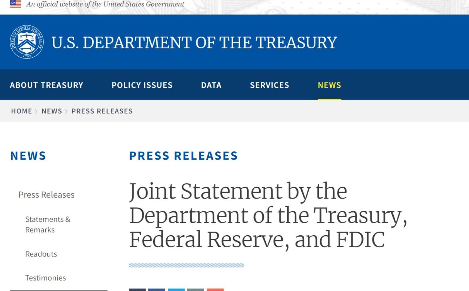 美國財長、聯準會、存保公司出面,宣布保障所有存款戶