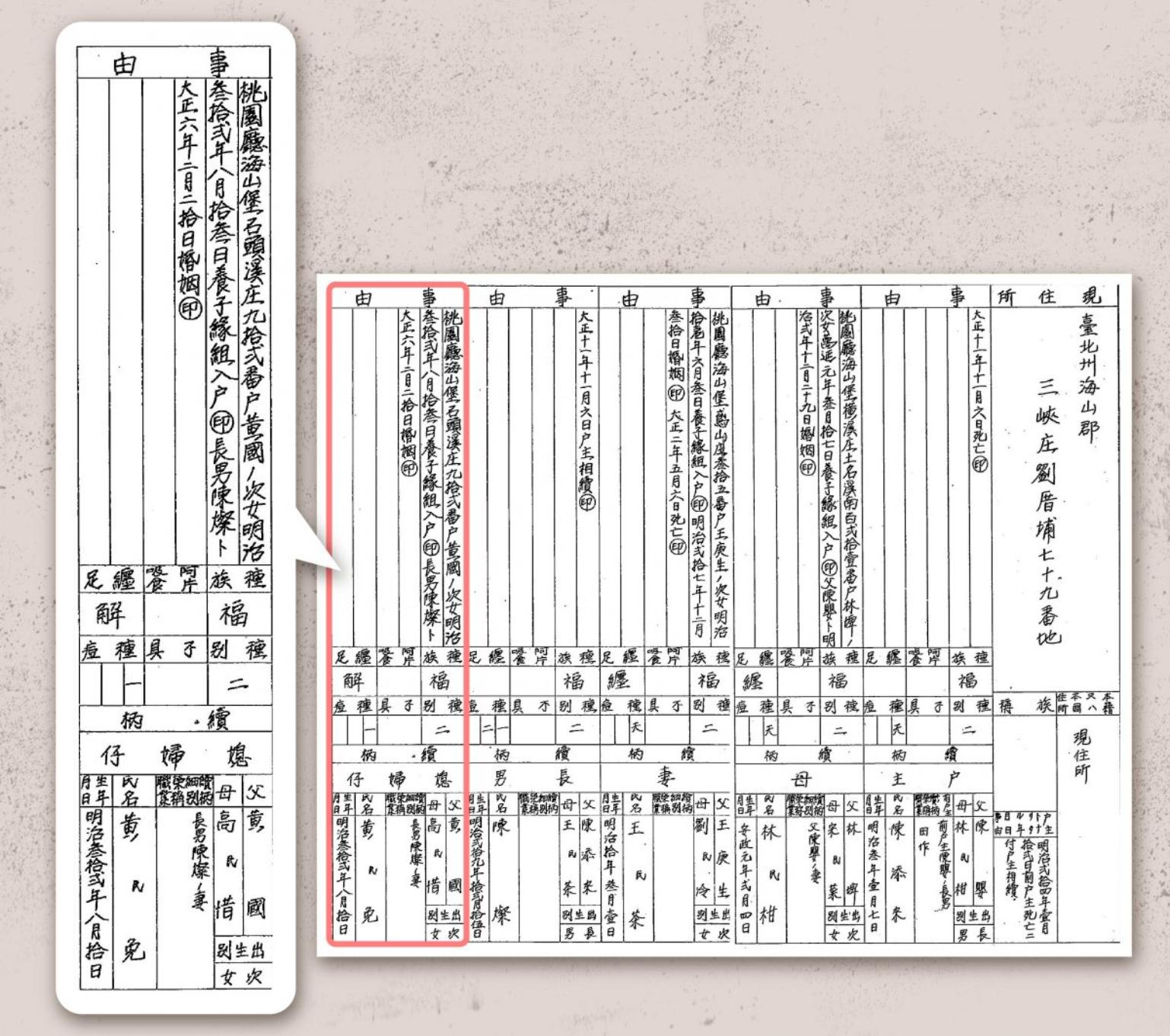 現在,讓我們透過日治臺灣戶口調查簿、田調訪談所累積的資料,深入了解童養媳婚姻故事。