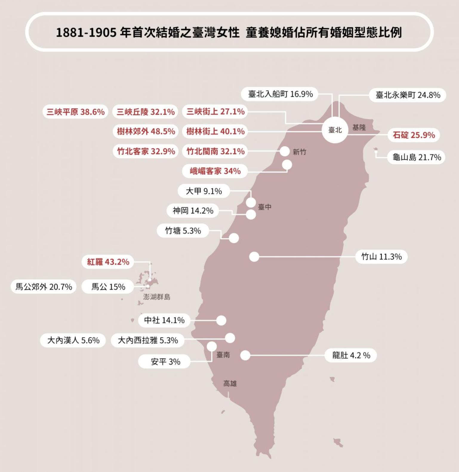 換句話說,童養媳婚僅在南北兩地客家社區有明顯的比例落差,這可能源於地域性差異,而不見得是特定方言群傳統使然。