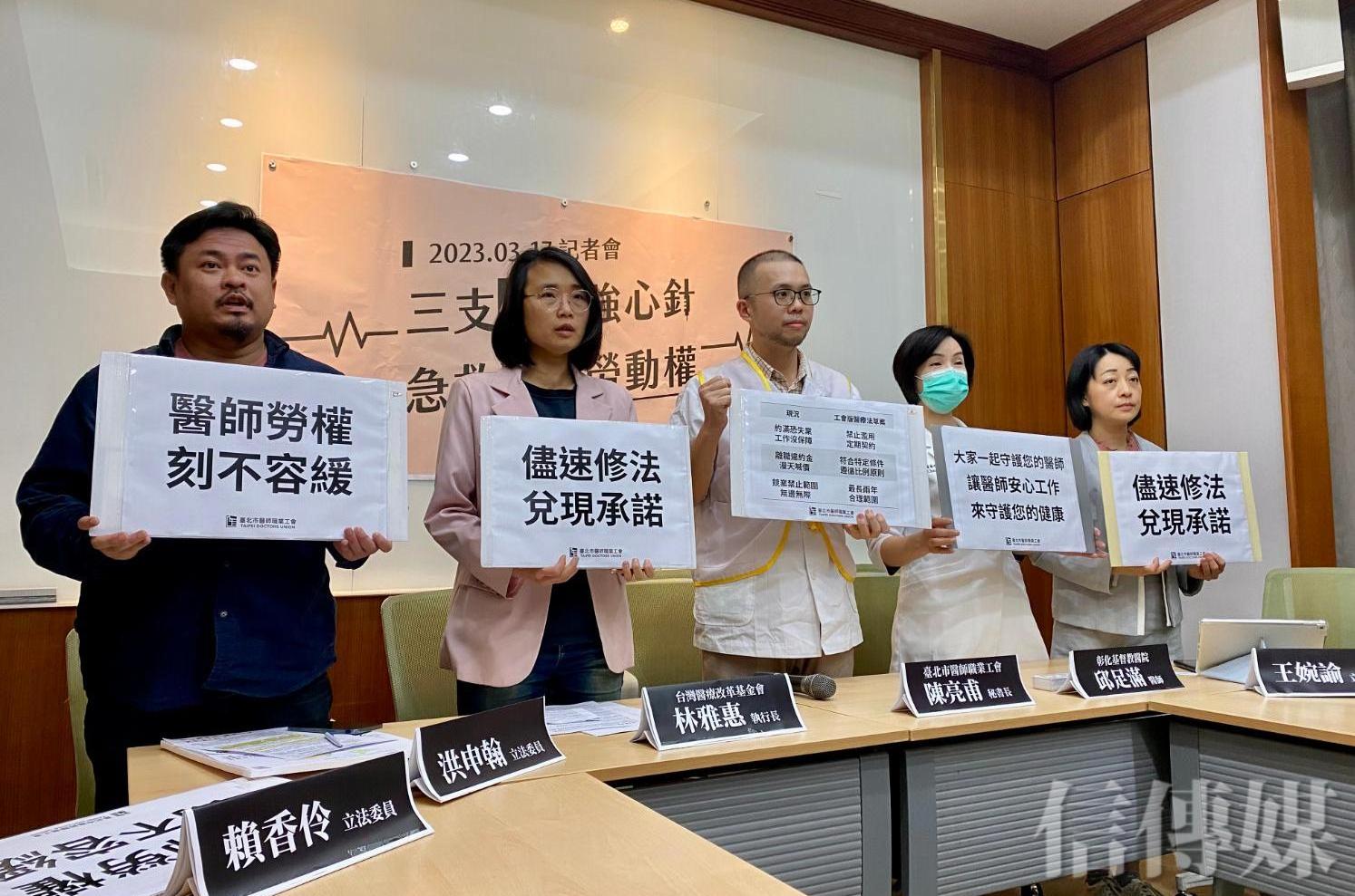 立委王婉諭也表示,衛福部在2019年提出的修法版本早已完成預告,但後續進度顯然停擺,「部會研商」至今仍未送進立法院,導致許多受僱醫師與院方發生勞資爭議時,工作權益卻無從主張及保障。