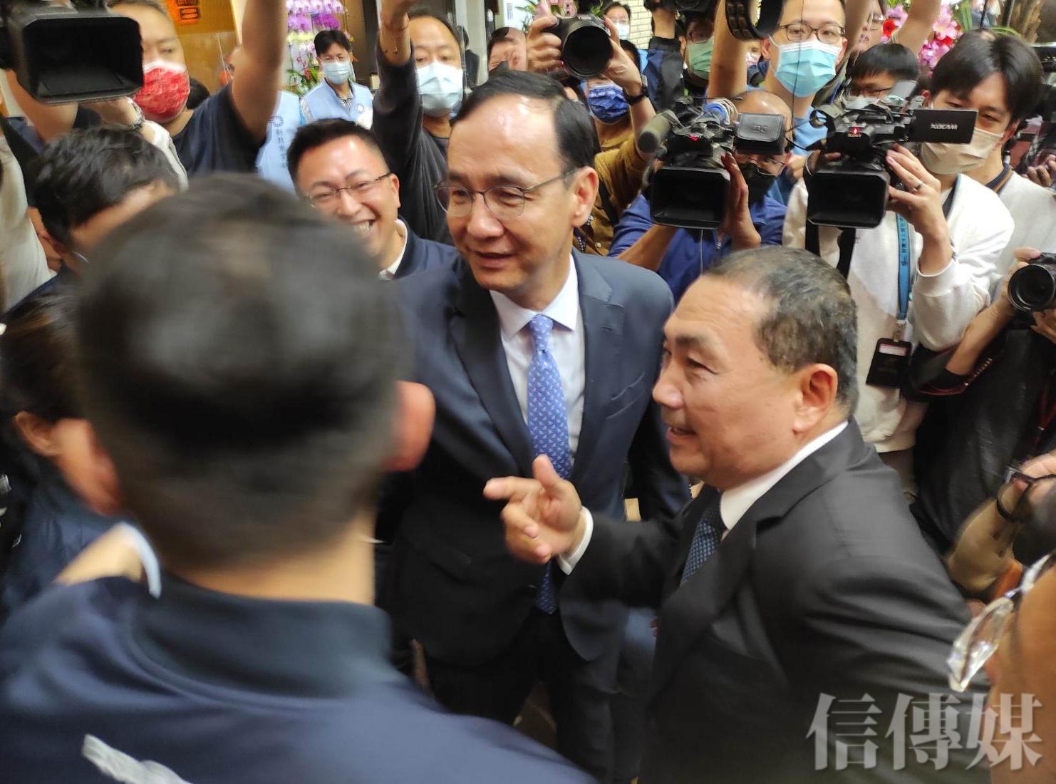 朱立倫受訪時也被問到今天行程是否要跟侯友宜破冰,儘管受限典禮即將開始而未予回答,但朱全程都跟侯互動熱絡,彼此握手搭肩寒暄。