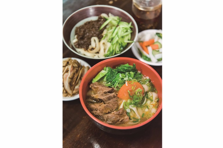 「我們的製造過程很簡單,就是用最古早的方法,所以吃起來和姑丈做的味道一模一樣。」他說得簡單,其實這正是最不簡單的事。尤其店裡的產品非常單純,「姑丈個性比較保守,只賣牛肉麵、炸醬麵、湯麵、海帶、皮蛋豆腐、泡菜、小黃瓜等小菜。第一天來上班時覺得很驚訝,只有2、3種麵,一般麵店有7、8種。」