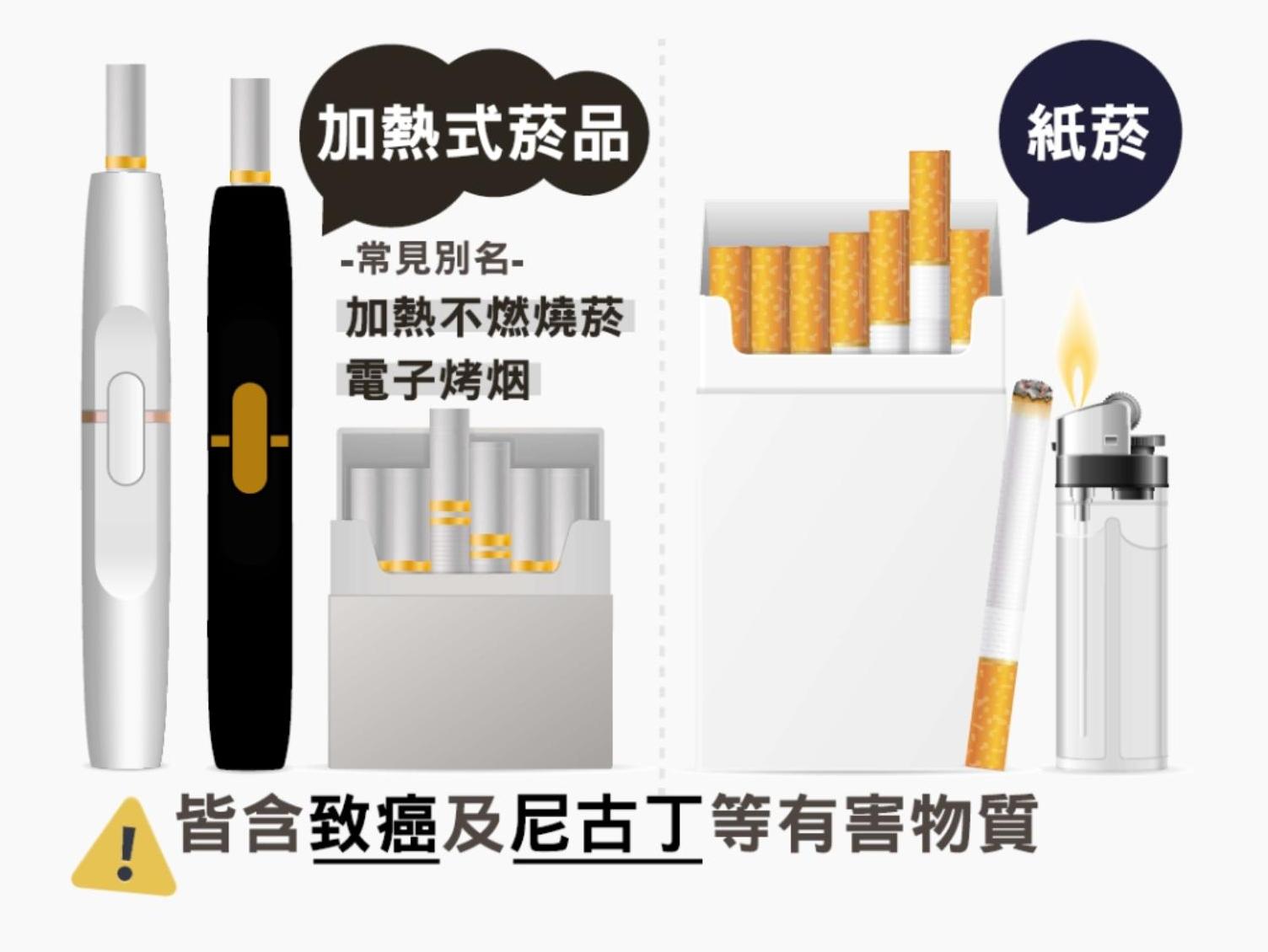 目前在實體店面或網路氾濫的電子煙、新類型菸草產品,包含加熱菸與其必要之載具,之前因為缺乏管制法源,難以取締查處。國健署自即日起與各地方政府衛生局合作,針對違法產品及違法行為將會依法查緝,重點對象包含實體店面、夜市流動攤販、送貨到府或到府推銷、校園周邊兜售、網路平臺及網路社團等。針對營業或販售行為、廣告宣傳方式,例如實體店家所懸掛的招牌、網路平臺的銷售網頁資訊等等加強查處。