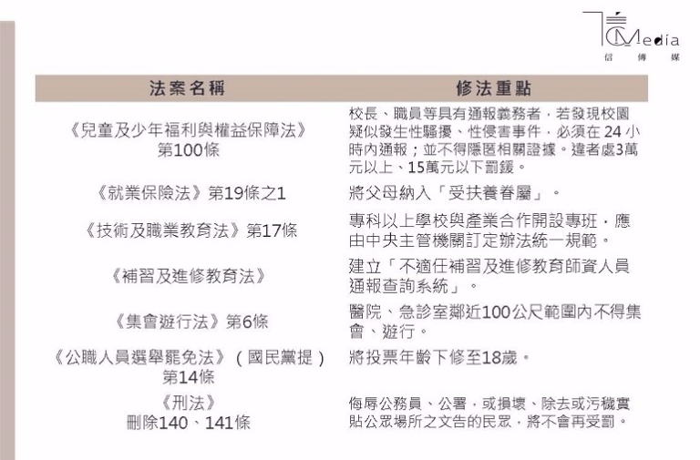 由於法定會期只到本月底,且臨時會也可能將主戰場放在《前瞻基礎建設條例》、年金改革相關法案上,這些法案即便付委、通過委員會審查階段,仍可能被擱置到下會期才會再行處理。