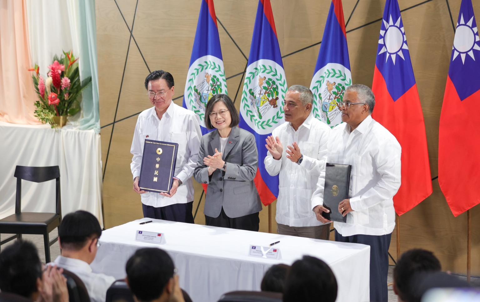 總統蔡英文今天與貝里斯總理布里仙紐(John Briceño)共同見證,由外交部長吳釗燮及貝里斯外交部長柯特尼(Eamon Courtenay)共同簽署兩國政府技術合作框架協定;蔡總統也感謝貝國眾議院日前通過友台決議,期待雙方未來有更多合作計畫,蔡總統也自豪地稱貝里斯是和台灣一樣堅信自由民主的盟友。