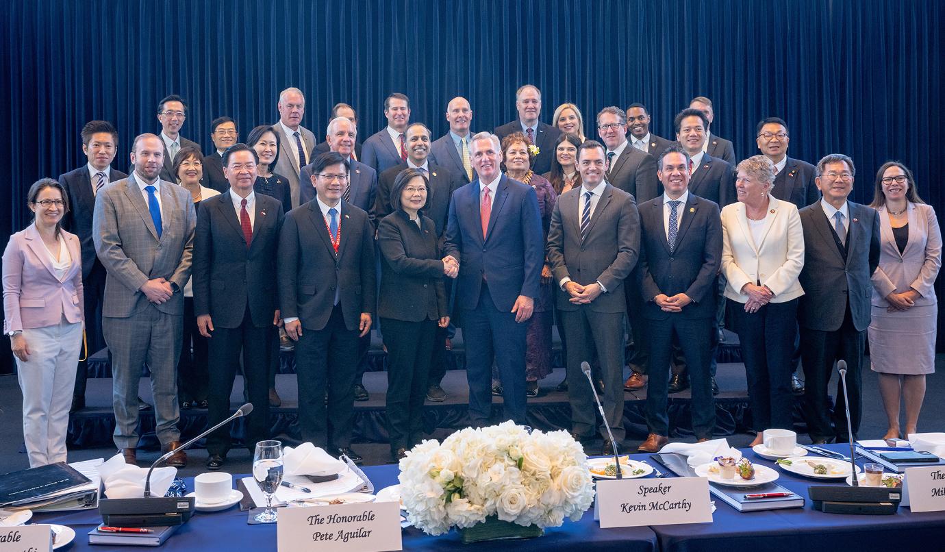 蔡英文「民主夥伴共榮之旅」,回程過境美國來到高峰,她今天在加州會晤美國眾議院議長麥卡錫等10多位跨黨派重量級國會議員。