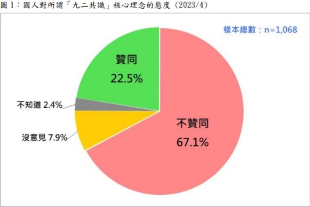 前總統馬英九日前結束訪問中國祭祖後表示,「九二共識又活過來了」,台灣民意基金會今日公布民調顯示,對於兩岸同屬「一中」的核心概念,有高達6成7的民眾不贊同,僅有2成3贊同,,顯示台灣社會主流民意明確不接受這樣的概念。