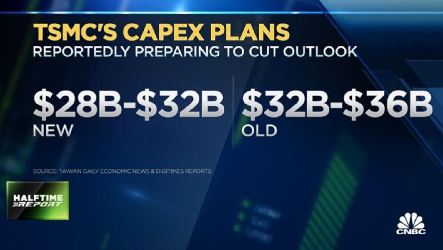 台積電法說會前夕,市場卻傳出台積電因半導體景氣回溫狀況不如預期影響等因素,恐縮減資本支出,從原來的320億美元至360億美元,下修至280億美元至320億美元,此事在美國各大財經媒體引起廣泛討論,並傳出設備廠ASML(艾司摩爾)因此遭到大幅度砍單,使其美國時間4月17日股價大跌。