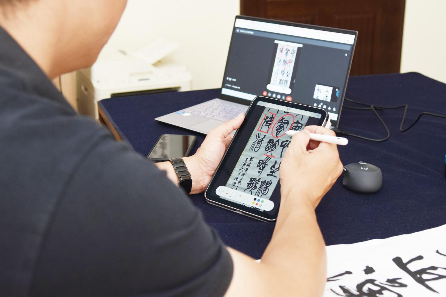 藝術創作崇尚自由而多元,吳啟林秉持著年輕特有的豐沛創意,疫情期間發揮巧思設計了書法的遠距線上教學,打破空間場地的藩籬,藉由科技傳達精微的書法筆觸,讓遠地的學生不受位置距離的限制,透過科技與創新思維的結合,致力建構一個全新的書法教學模式。