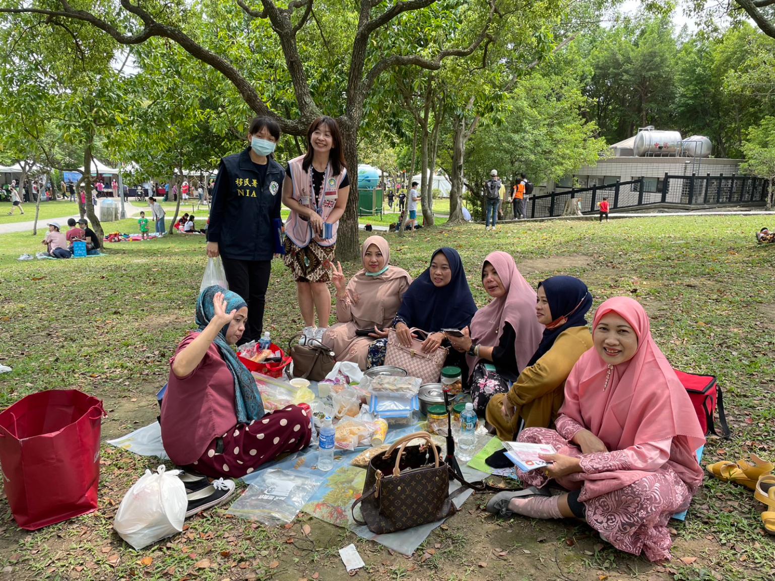 一年一度的開齋節是穆斯林朋友與家人團聚的重要時刻,移民署北區事務大隊臺北市服務站與臺北市專勤隊參加今(23)日臺北市政府於大安森林公園舉行開齋節活動,並設置「擴大逾期停(居)留自行到案專案」公益攤位,臺北市專勤隊隊長蔡培源於現場宣導,臺北市服務站主任蘇慧雯則以伊斯蘭教代表色「綠色」,致上象徵活力及祝福的「綠色福袋」,與來自世界各地的穆斯林朋友一同歡慶。