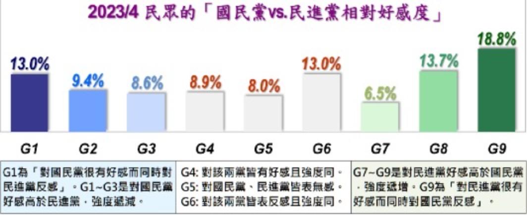 而國民黨的好感度為31.4%,比上月增加2.8%,反感度則為53.1%,比上月減少4.6%。