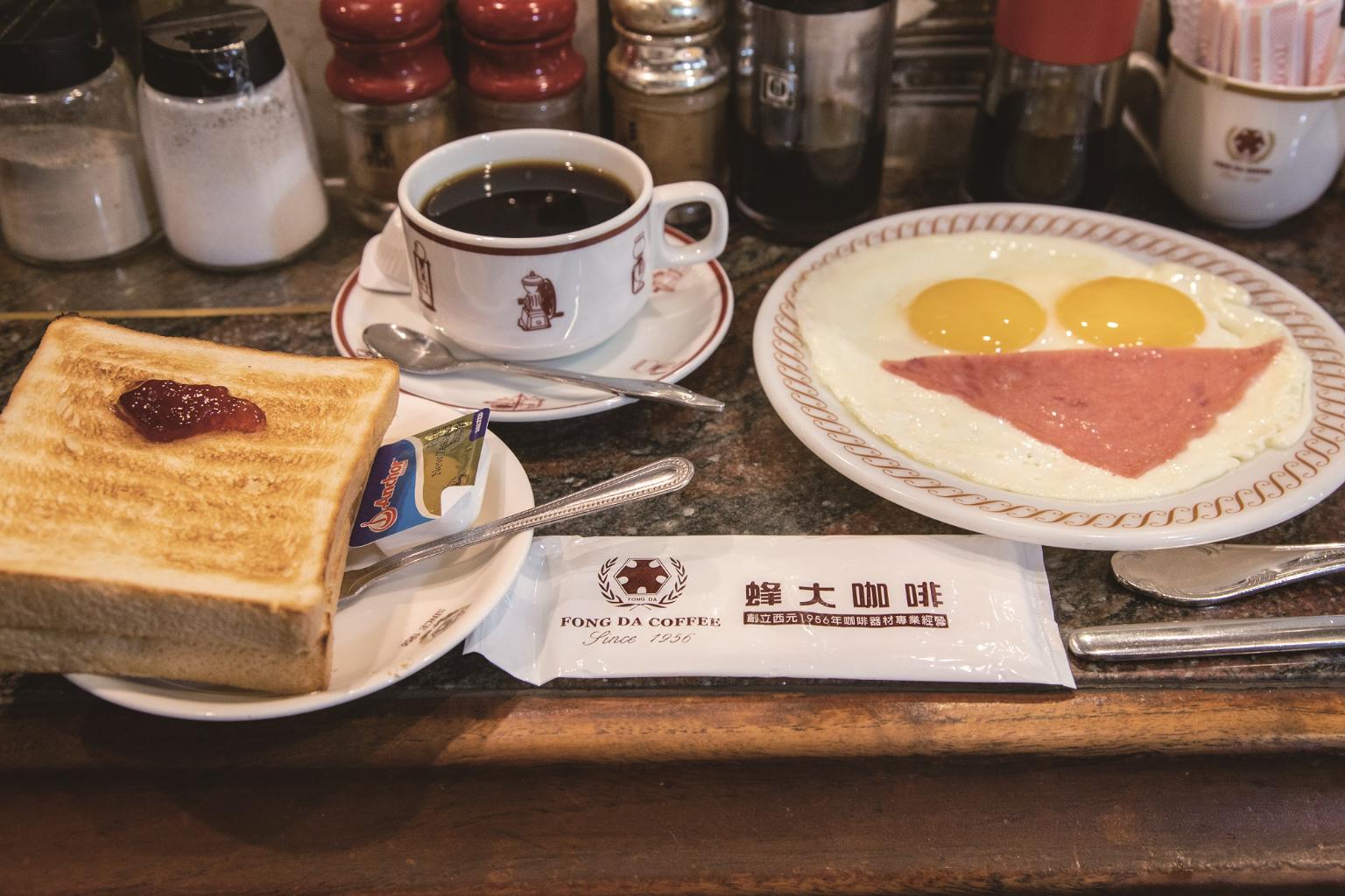 店內飄散出濃郁的咖啡香氣,摻雜著糕餅的甜香,這裡不僅咖啡品項齊全,也有各式港式糕餅,如合桃酥、雞仔餅、綠豆糕、鮑魚酥等,可以佐咖啡享用。Hally特別推薦早餐時間提供的Morning Service,「一杯咖啡的價格就能享受雙仁荷包蛋加火腿片、烤吐司與果醬奶油,以及一杯熱咖啡的高級享受,是我城許多老輩紳士的心頭好。」
