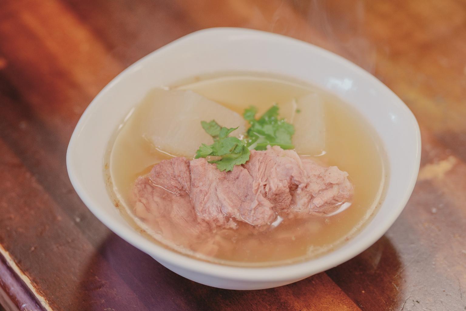 已經由第四代接手的「一肥仔」,雖然搬過幾次家,但依然在艋舺青山宮附近延續祖輩傳承的好味道。Hally說,這裡有全台北「最優雅的排骨湯」,店家特別挑選的排骨肉搭配蘿蔔熬煮數小時,湯頭完好地保留排骨的精髓,蘿蔔熬煮到晶瑩剔透,軟嫩而不失口感。最厲害的是,這裡的排骨不需要「啃」,用筷子就可以輕易地「骨肉分離」,吃相特別優雅。店家的牆上也掛著祖輩與舊時攤位的黑白老照片,不難看出店家在復刻老滋味的同時,也延續祖輩在老城停留的生活回憶。