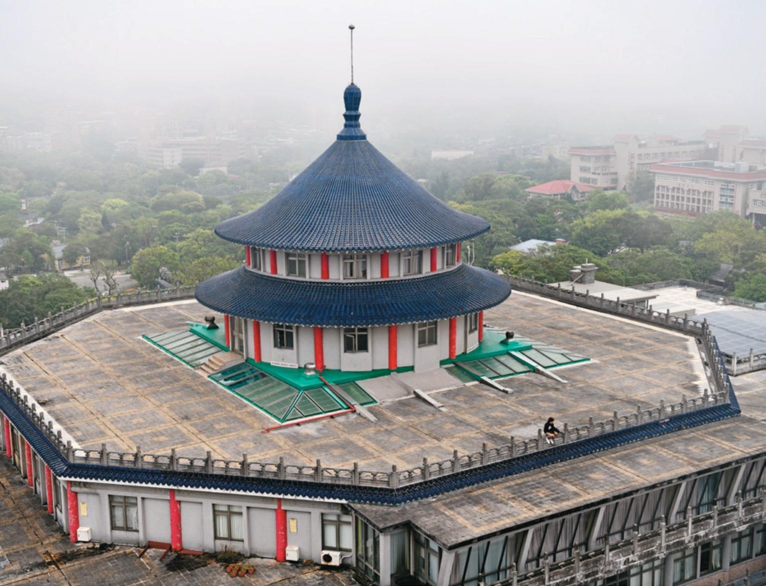 景色優美、空氣清新的中國文化大學,校內建物別具一格,因創校時以宏揚中國學術為宗旨,校舍採用中國古典樣式,例如中國明堂造型設計風格的紅簷、圍欄,加以小橋流水點綴,讓校園增添韻味,猶如穿梭在古裝劇般的場景。春末夏初之際,雲雨霧氣匯聚於此,被山嵐籠罩的校園建築,恍如空中樓閣,美不勝收。