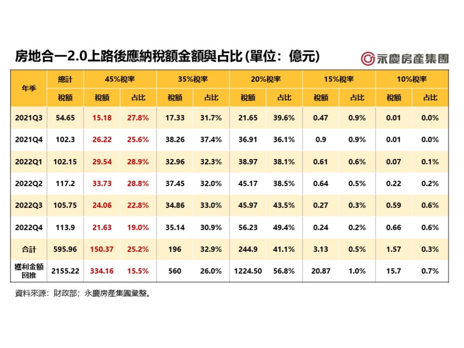 永慶房產集團統計財政部《房地合一2.0》相關數據發現,《房地合一2.0》自2021年7月上路至2022年底,遭到課徵45%重稅的房市短期交易案件突破4.2萬件,總獲利高達334億!數據同時顯示,2022年第四季房市短期交易案平均每件獲利金額高達92.2萬!房價推升猛烈!