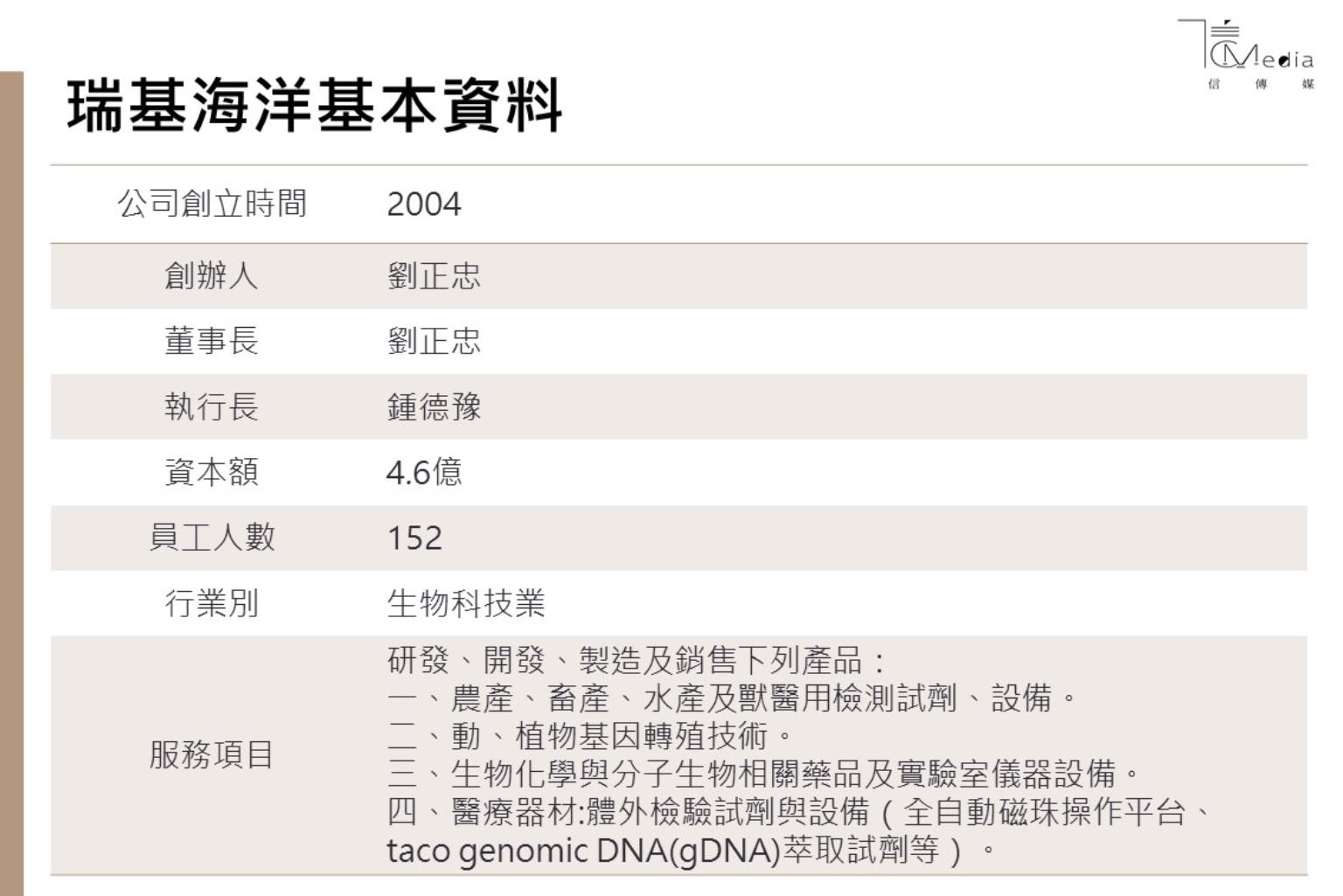 新冠肺炎疫情加速生技醫療產業發展,跑贏全台灣業者的是過去以動物流行病試劑聞名的瑞基海洋。