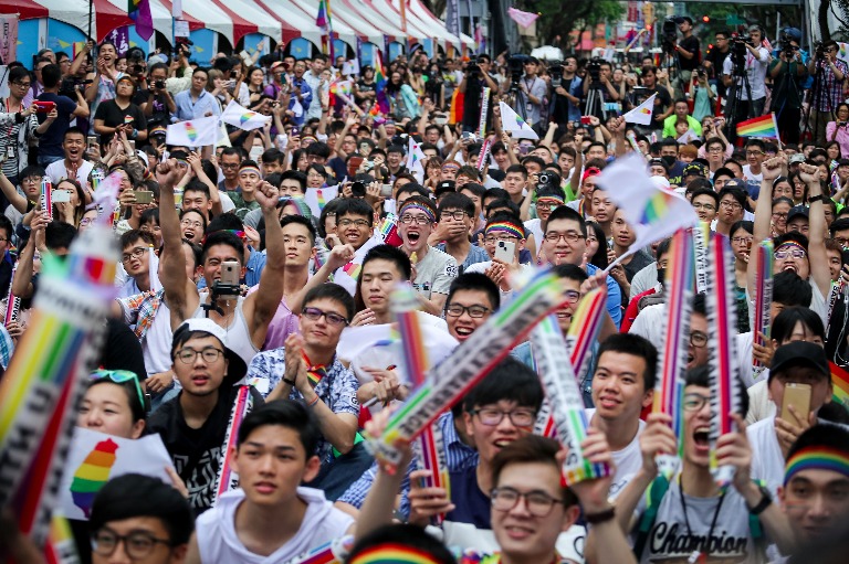 5月24日大法官的釋憲結果,規定禁止同性結婚與憲法保障婚姻自由及保障人民平等權有違,宣佈違憲。婚姻平權大平台於下午在立法院旁青島東路上舉行「點亮台灣,亞洲燈塔」活動,下午4時同婚釋憲案宣布民法違憲,參與「點亮台灣,亞洲燈塔」活動的支持者得知消息後興奮歡呼。