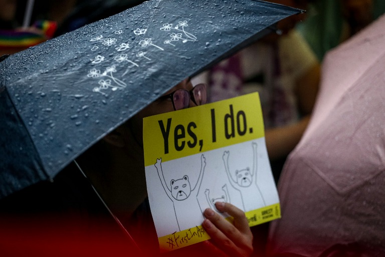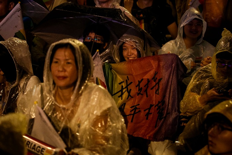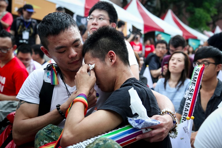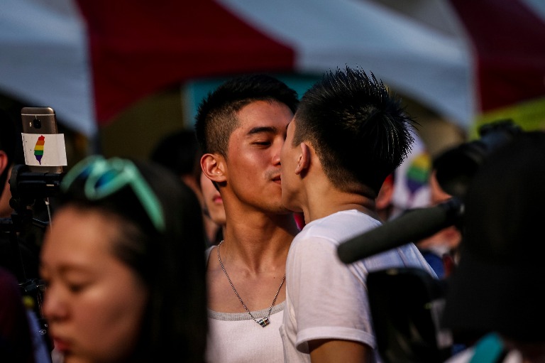 同志朋友們難掩激動,他(她)們用擁抱及熱吻表達內心的喜悅。