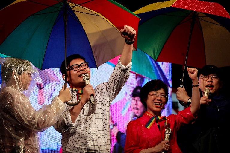 一路支持婚姻平權的國民黨立委許毓仁以及民進黨立委尤美女也到場講話,將現場的氣氛帶到最高點。