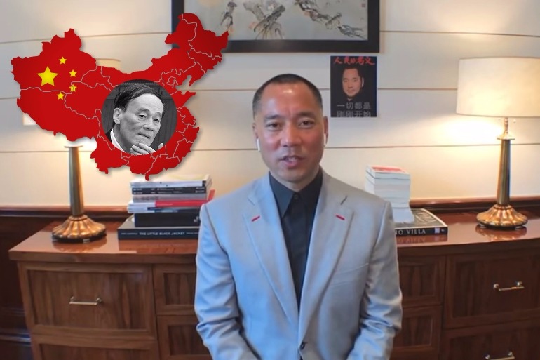 他與中國當局的衝突在4月19日發展到新ㄧ波高潮,那天他接受美國之音直播採訪,大爆中國共產黨中央紀律檢查委員會書記王岐山在美國擁有房地產,他說,王岐山的家人在美國加州擁有價值五百多萬美元的豪宅,更指中共總書記習近平已對王立案調查。同一天,中國外交部也證實已要求國際刑警組織對郭文貴向成員國發出「紅色通報」。