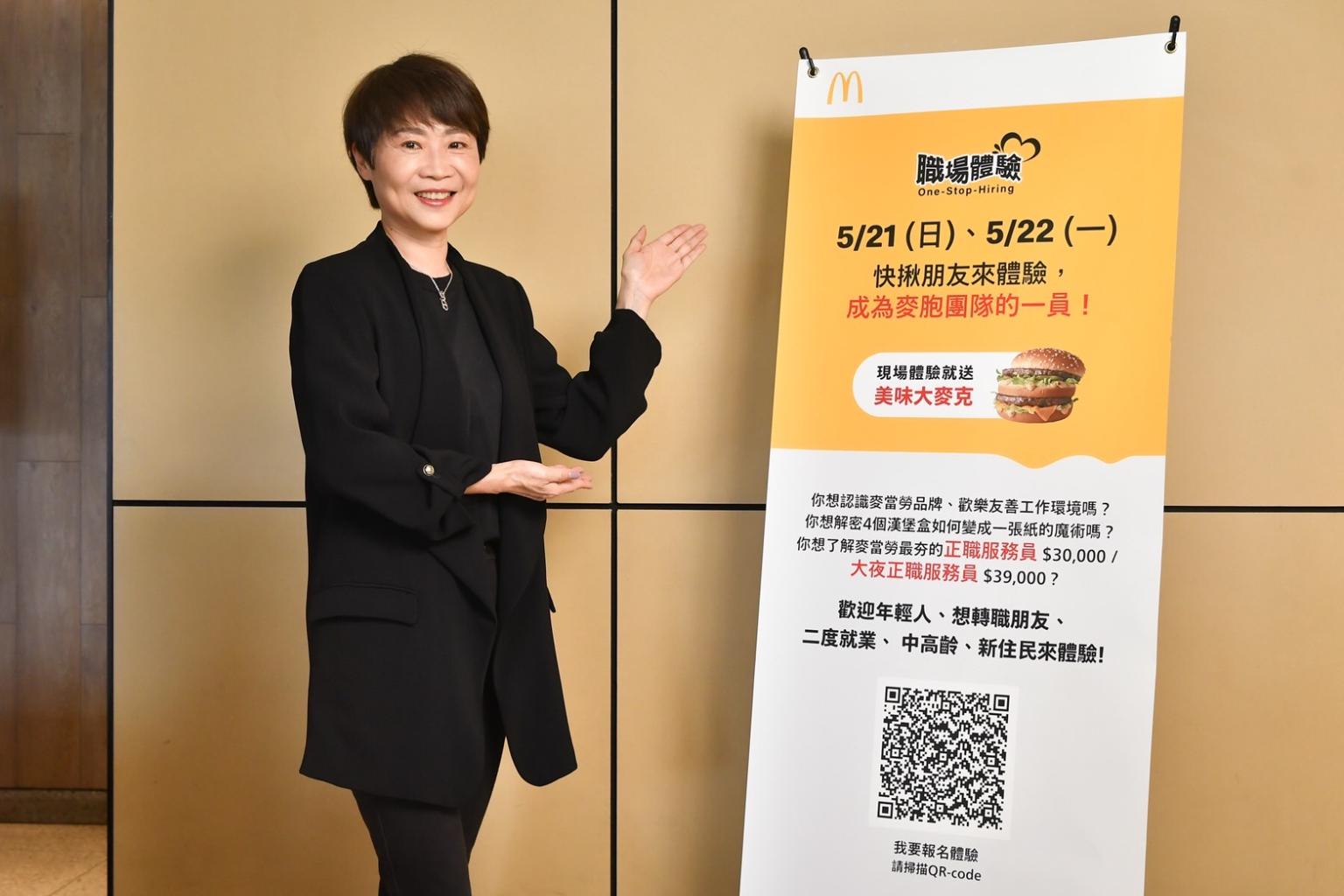 台灣麥當勞長期推動多元人力池方案,為持續優化服務人力結構,今年廣招600名「正職服務員」,並祭出「好彈性、好穩定、好保障」麥式三好,歡迎中高齡、二度就業及對餐飲正職有興趣的求職者加入,共創中高齡友善、多元融合的職場環境;5月21日、22日連續兩天,於全台麥當勞餐廳舉辦「職場體驗」招募活動,每天三場、共超過2,000場次,求職者可就近親臨麥當勞餐廳,現場體驗工作內容、瞭解薪資福利與品牌文化,還能直接面試搶先卡位,完成體驗流程就送大麥克兌換券一張!(請參考麥當勞「缺一不可」招募網站)