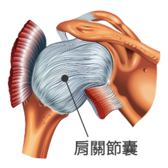 「關節囊」(圖一)民眾可能相當陌生,醫學上「囊」(capsule)是指「包起某個構造的袋狀組織」。肩關節是「肱骨頭」及「肩胛骨的凹窩」所構成,固定組織是以「肌肉」、「韌帶」(連接骨與骨)、「肌腱」(連結肌肉與骨頭)及「關節囊」組成(關節全部包在一起),因而可以做伸展、彎曲、內外旋、內收、外展動作不需擔心脫臼。