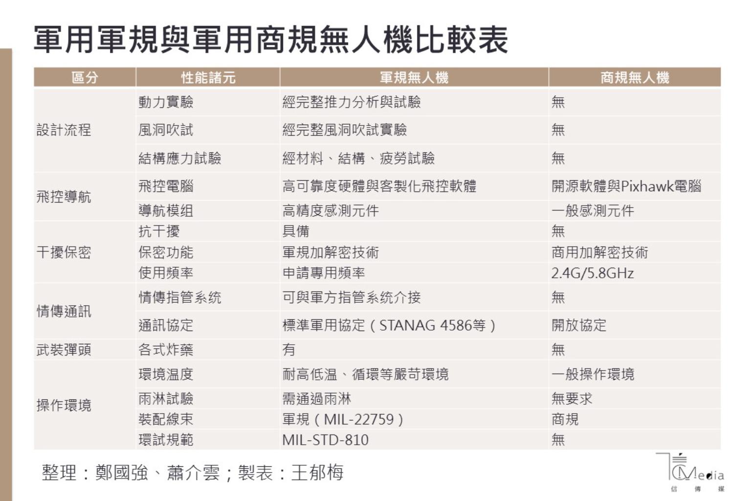 對於軍、民競合,中科院人士說的非常直白,軍規產品主、次系統必須經過嚴格的驗證,以及吹風洞,與民間無人機有著極大的不同。