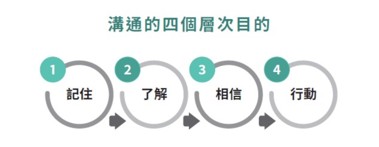 同樣的,簡報的目的,也可以分成「記住」、「了解」、「相信」、「行動」