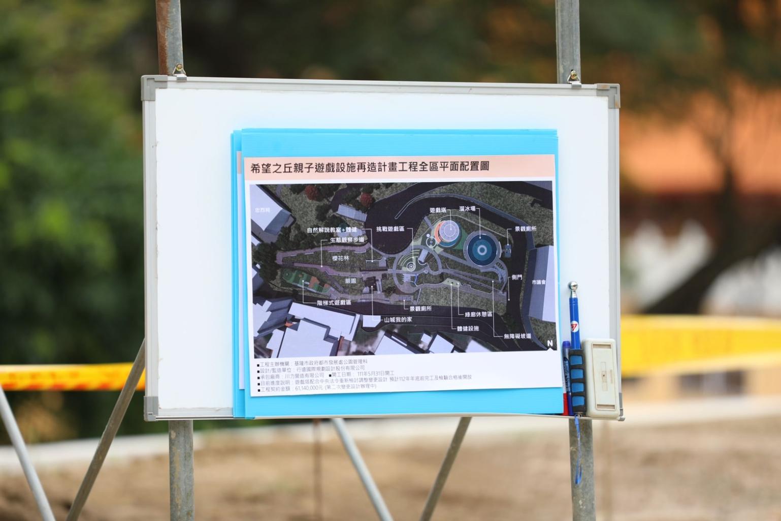 基隆市府都發處表示,遊戲塔為希望之丘的主要遊具設施,將配合中央法令重新檢討並調整變更設計,希望在年底前完工並通過檢驗後,開放親子共享遊憩,有關民代建議增設雨遮設施,將會視第一階段完工後再行評估。