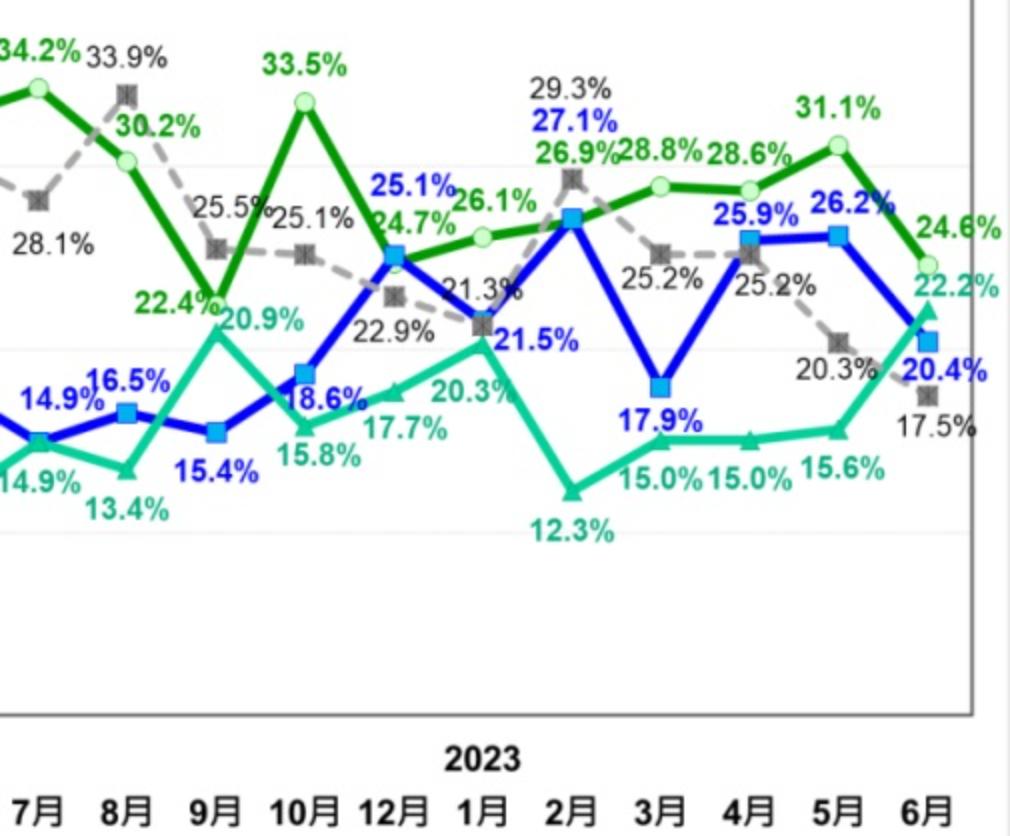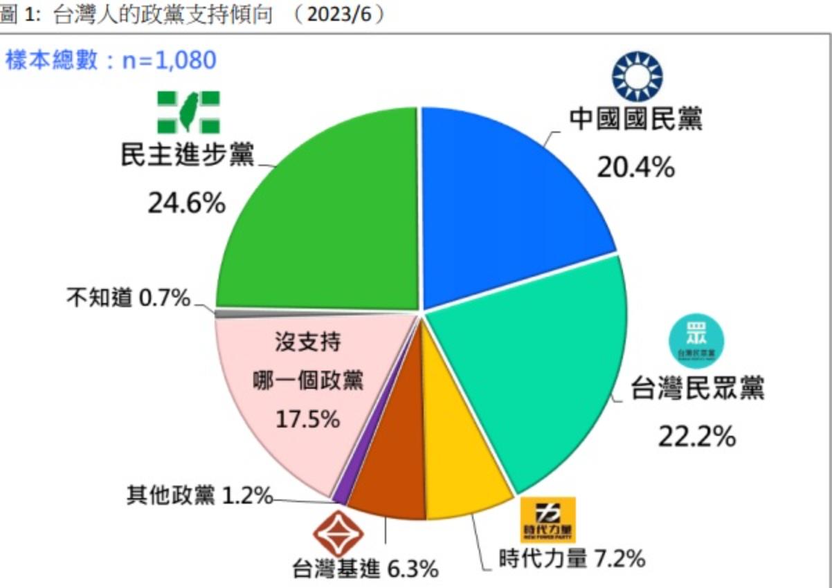 國內政黨紛擾天下大亂之際,台灣民意基金會今日公布6月全國性民調顯示,政黨支持度出現重大變化,民進黨自31.1%大跌至24.6%,台灣民眾黨衝到22.2%,國民黨下滑至20.4%,政黨體系出現明顯重組的跡象。