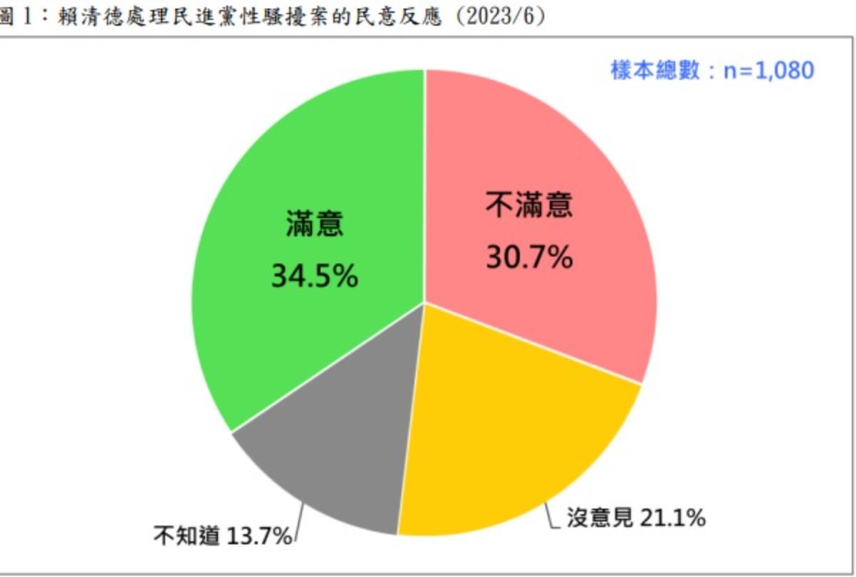 這項民調詢問:「最近民進黨內性騷擾案接連出現,引起社會關注。一般說來,您對黨主席賴清德處理性騷擾案的整體表現,滿不滿意?」