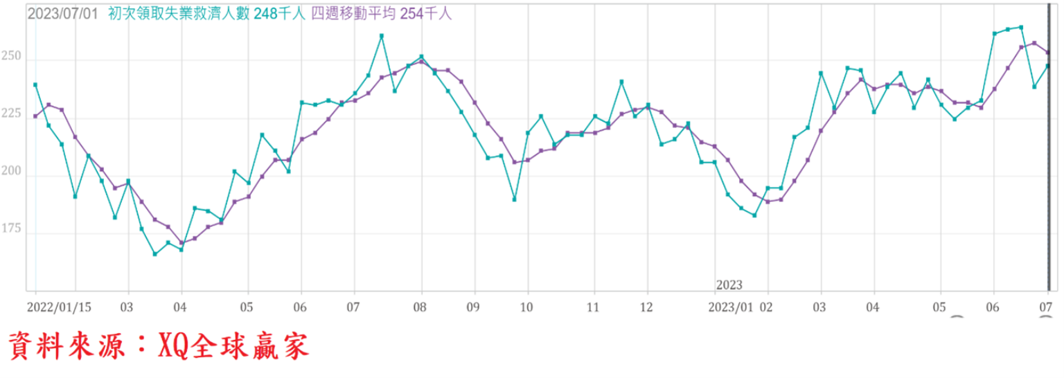 截至7月1日止的美國單周初領失業救濟金人數上升至24.8萬人,初領失業救濟金四周移動平均數自前周的25.8萬人,小幅下降至25.4萬人,結束連續4周上升,仍在長期低檔區,市場預期7月27日舉行的利率決策會議可能恢復升息一碼的緩步調。