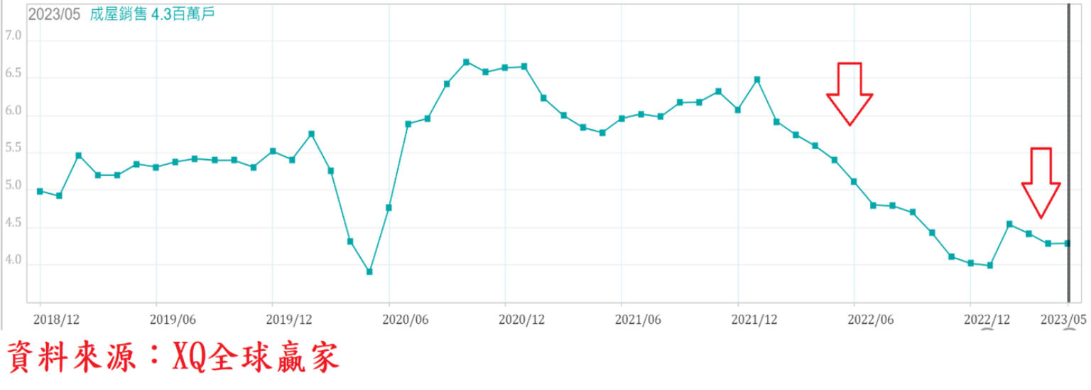 美國5月成屋年率銷售戶數上升至430萬戶,月增0.23%,較去年同期仍年減20.52%,連續20個月較去年同期衰退,顯示美國房市景氣仍處於收縮階段。