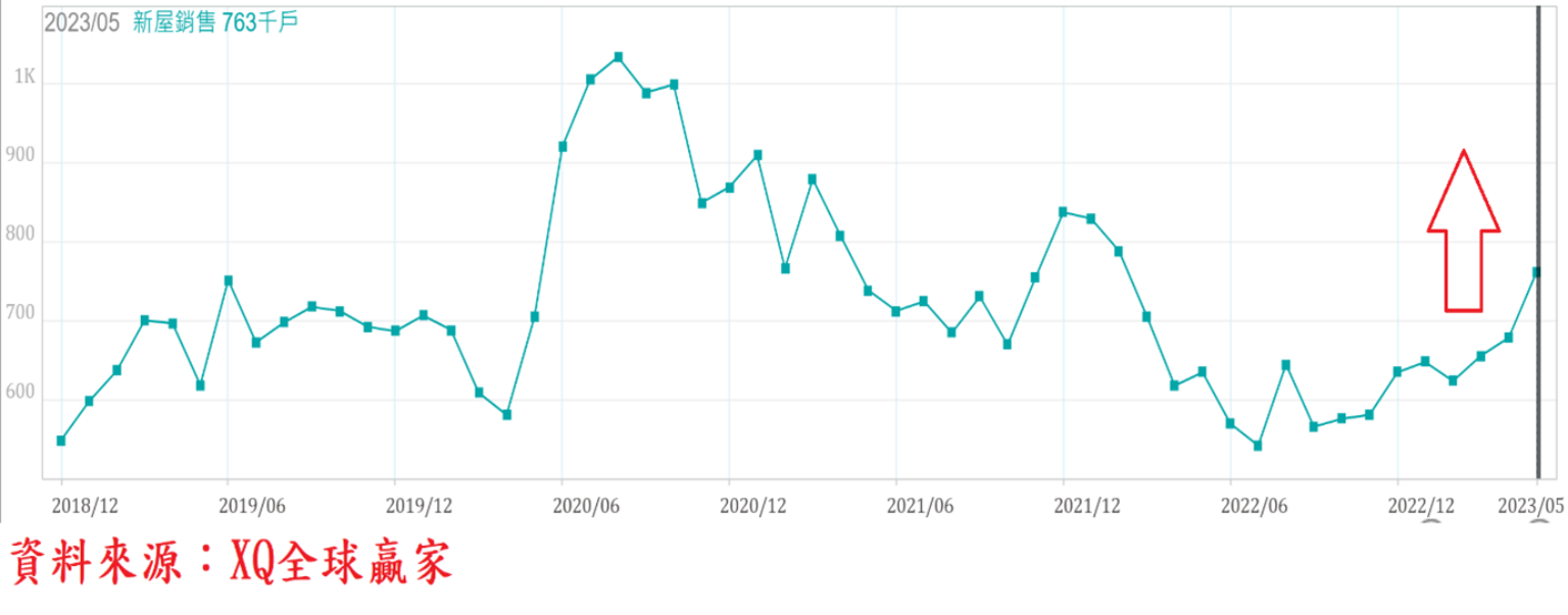 美國5月新屋年率銷售戶數上升至76.3萬戶,月增12.2%,連續3個月上升,創2022年2月後最高點,較去年同期年增19.97%,連續13個月較去年同期衰退後的第2個月年成長,離疫情期間銷售高峰2020年8月的103.6萬戶,雖仍也很大落差,但觸底回升的形態越來越明顯。近期單月新屋銷售戶數震盪走高,且成屋房價中位數亦連續4個月出現止跌回穩,市況初步出現落底徵兆,但在長年期房貸利率仍處於長期高檔之下,整體房市景氣下降趨勢欲扭轉成上升趨勢,恐怕仍需更長時間觀察。