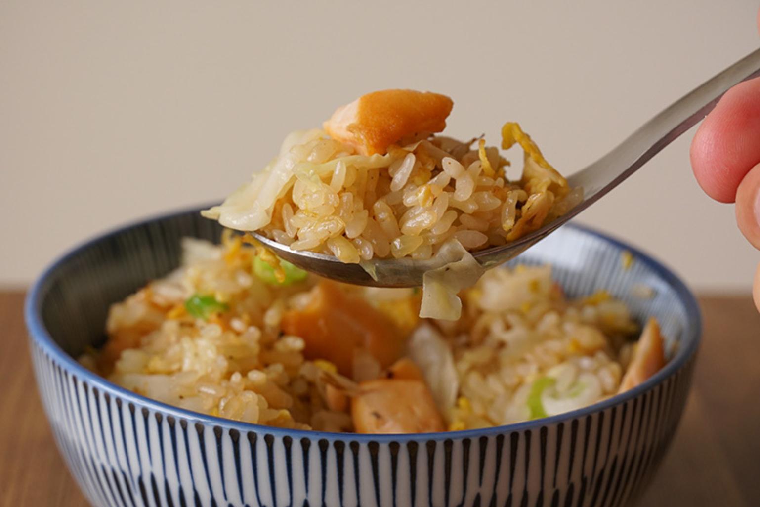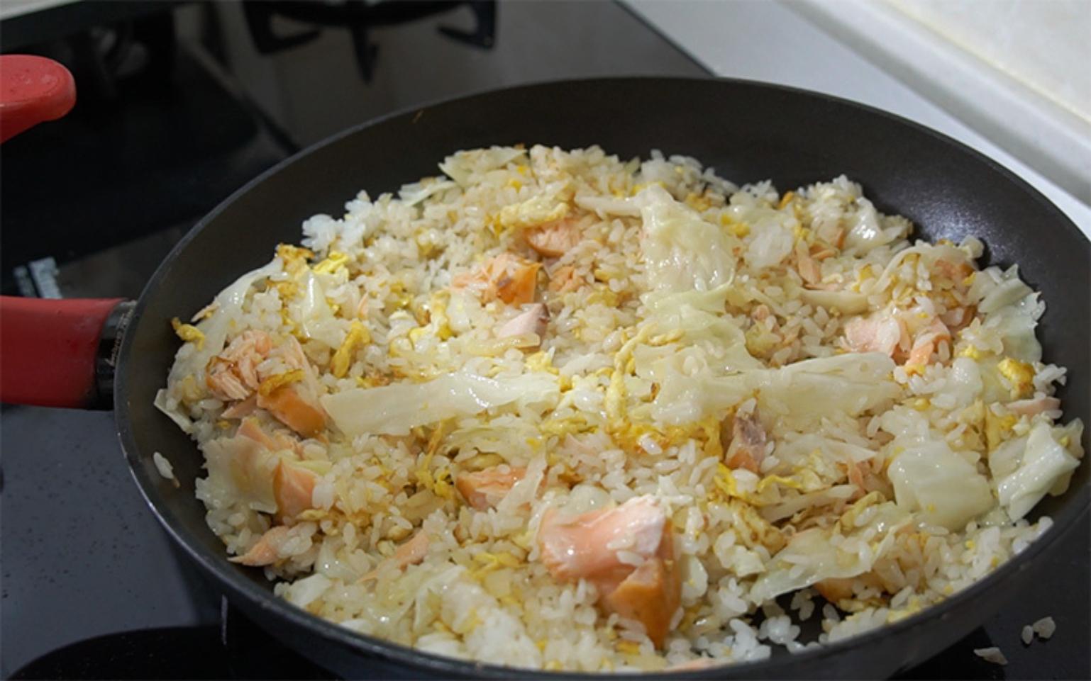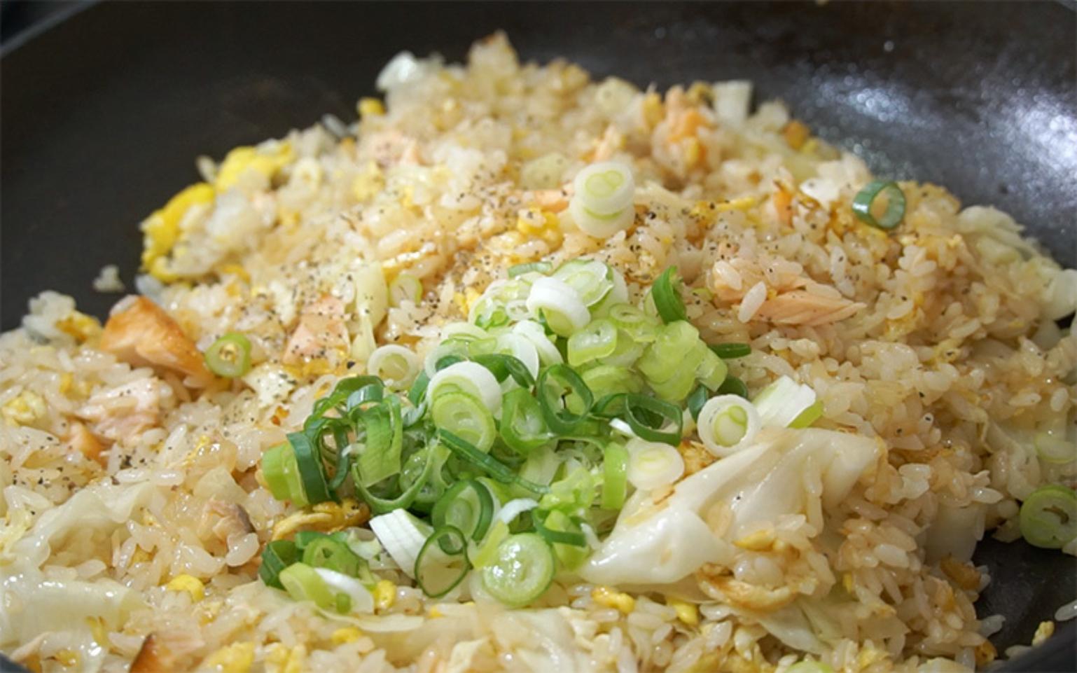 利用鮭魚油炒的飯真的好香,讓炒飯多了一份鮮味。